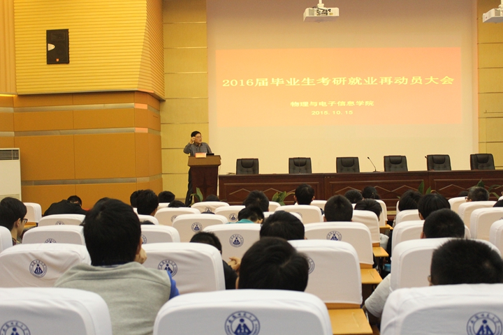 为解读2016届毕业生就业形式及政策,完善求职攻略,提醒2016届研究生报名注意事项,提升考研效率。350VIP浦京集团于10月15日在赭山校区科技小礼堂召开考研就业再动员大会,副院长郑贤锋、丁绪星、毕业班辅导员及全体毕业生出席会议,大会由院党委副书记吴长义主持。